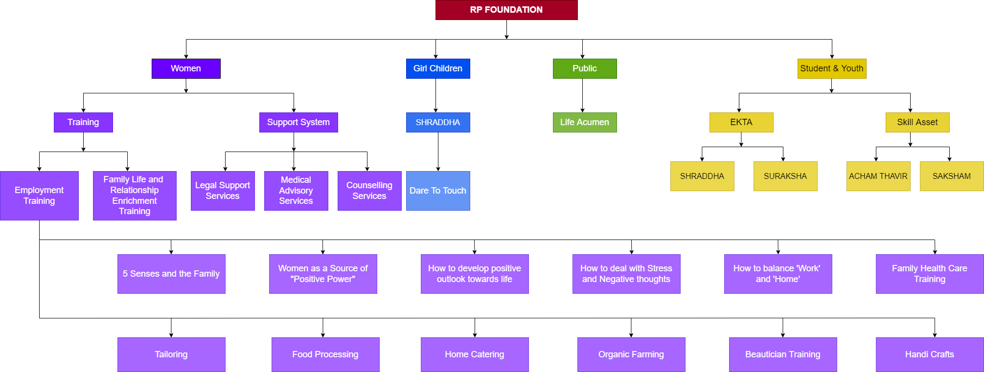 RP(Radiate Positivity) Foundation is a secular, not- for-profit organization in Tamil Nadu that aims to ‘BRING POSITIVE CHANGE’ in today’s fast-paced society. We work through varied modules and techniques to promote positive mind set and quality based living. Having its focus on varied segments of society, RP Foundation has come a long way in making efforts that have led to great impact in today’s environment. Led by an enthusiastic woman herself, the prime focus of this foundation is to EMPOWER women by helping them to gain confidence, practice self-focus, trainings & developments to shape their personal and professional capabilities. We believe that, ‘Empowerment isn’t about making women powerful. Women are already powerful. It’s about changing the way the world perceives that power’. Through our techniques and practices we encourage young girls and women to actively participate, learn & lead in becoming the change agents in the society.